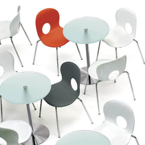 Well known for office accessories such as coat stands, waste bins & clocks – Rexite now offers a furniture range including chairs suitable for both office and domestic use. Ideal for home kitchens or dining rooms as well as café, canteen or office the Olivia, Eveline and Alexa chairs are offered in polypropylene, polycarbonate and polycarb/leather respectively. Complimentary pedestal or leg-frame based tables are also available.
